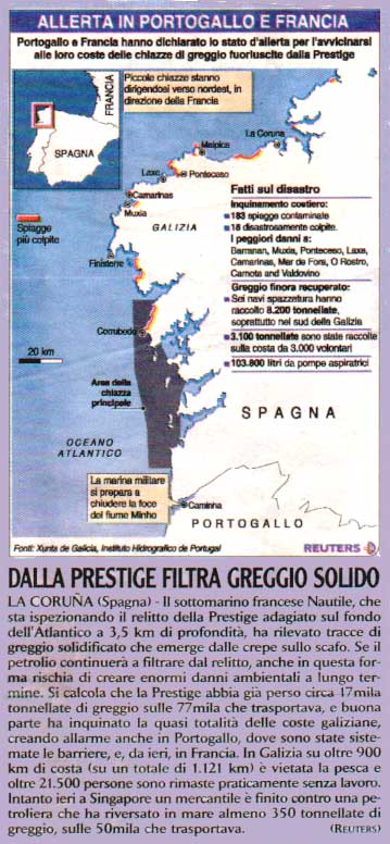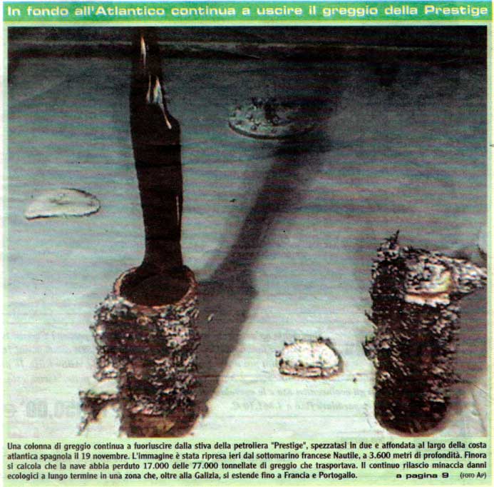 petroliera "Prestige" dopo aver perso in mare oltre 17.000 tons di greggio si