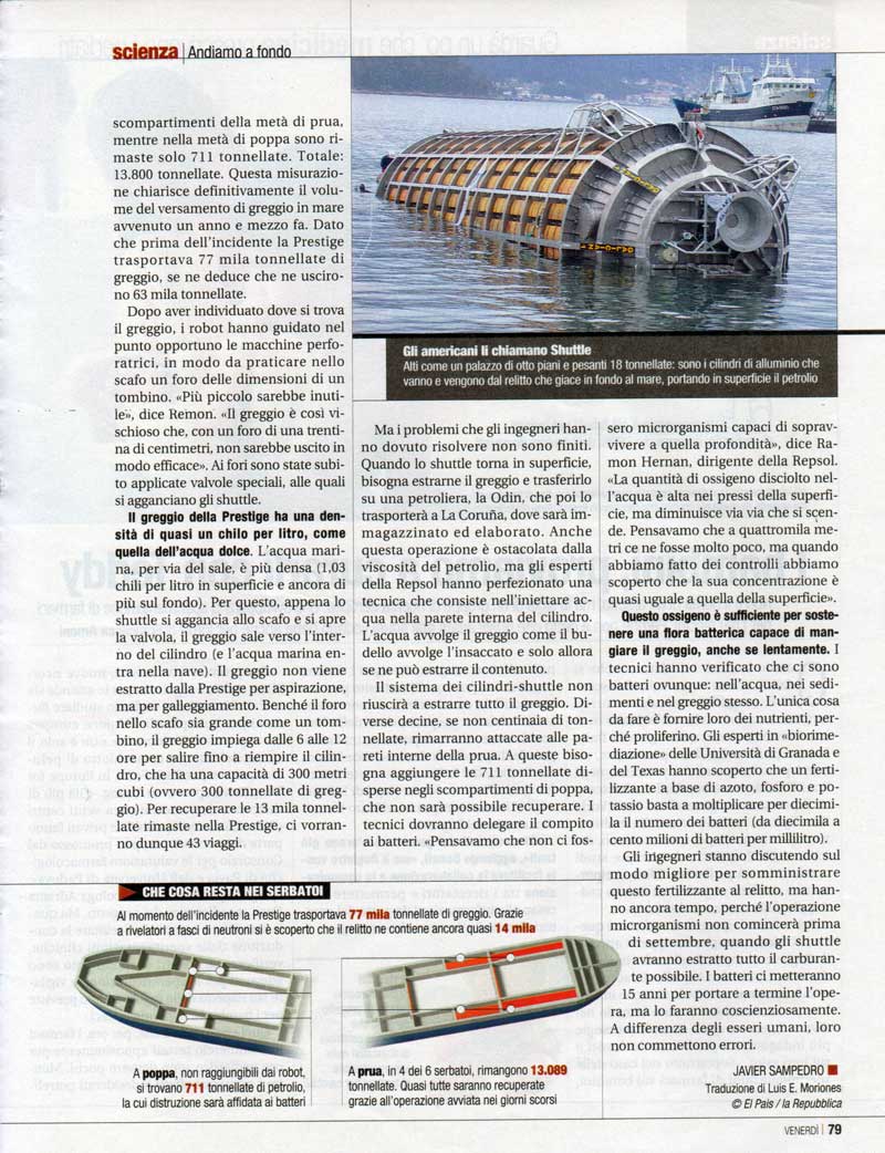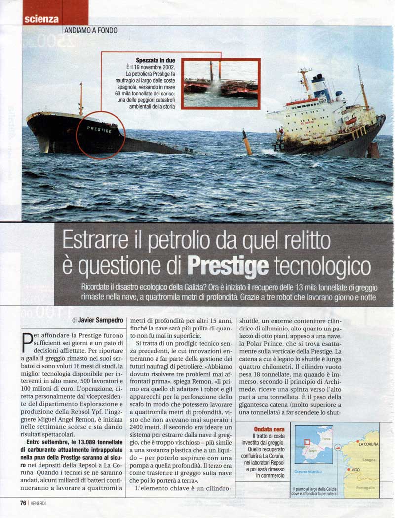 Finalmente dopo circa due anni dal disastro è iniziato il recupero delle rimanenti 13 mila tonnellate di greggio rimaste nella petroliera PRESTIGE