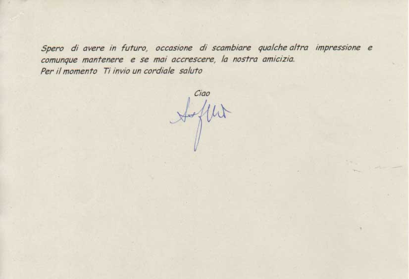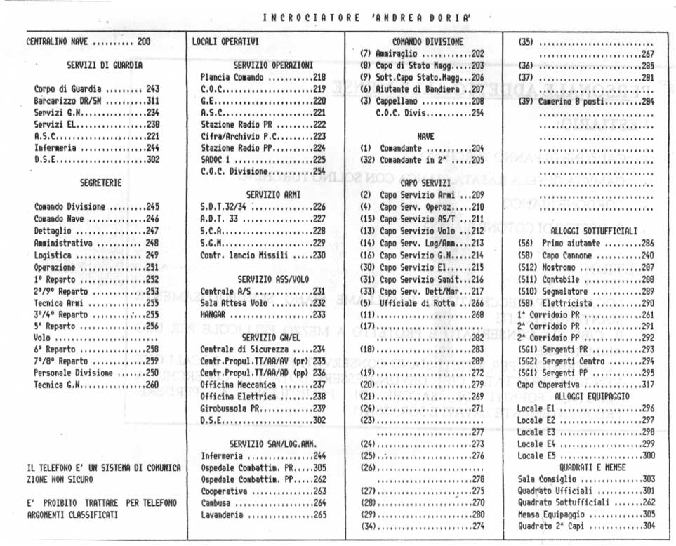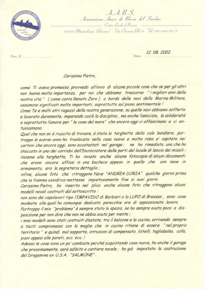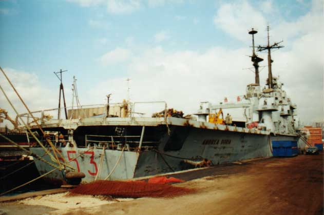 Ringrazio il Sig. Alberto Gradin di Montesilvano (Pescara) che mi ha fatto pervenire in dono le ultime immagini dell'Andrea Doria. Immagini che mi fanno ritornare ai tempi in cui l'Andrea Doria solcava i mari, non solo per scopi militari, ma anche per la salvaguardia del soccorso in mare, prestato a navi grandi e piccole, in buon armamento o carrette rappeciate, innumerevoli volte durante il mio imbarco e che nessuno mai ha lodato l'opera di cotanti uomini a bordo di una cosi GRANDE NAVE!